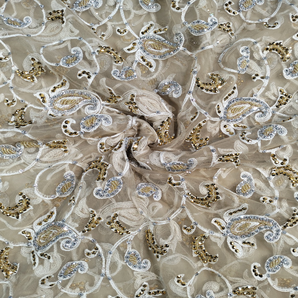 Heavy Beaded Wedding Net Lace Fabric Crystal and Golden Stone Beaded Women Wedding for Ethiopia Lace Material Dress Fabric