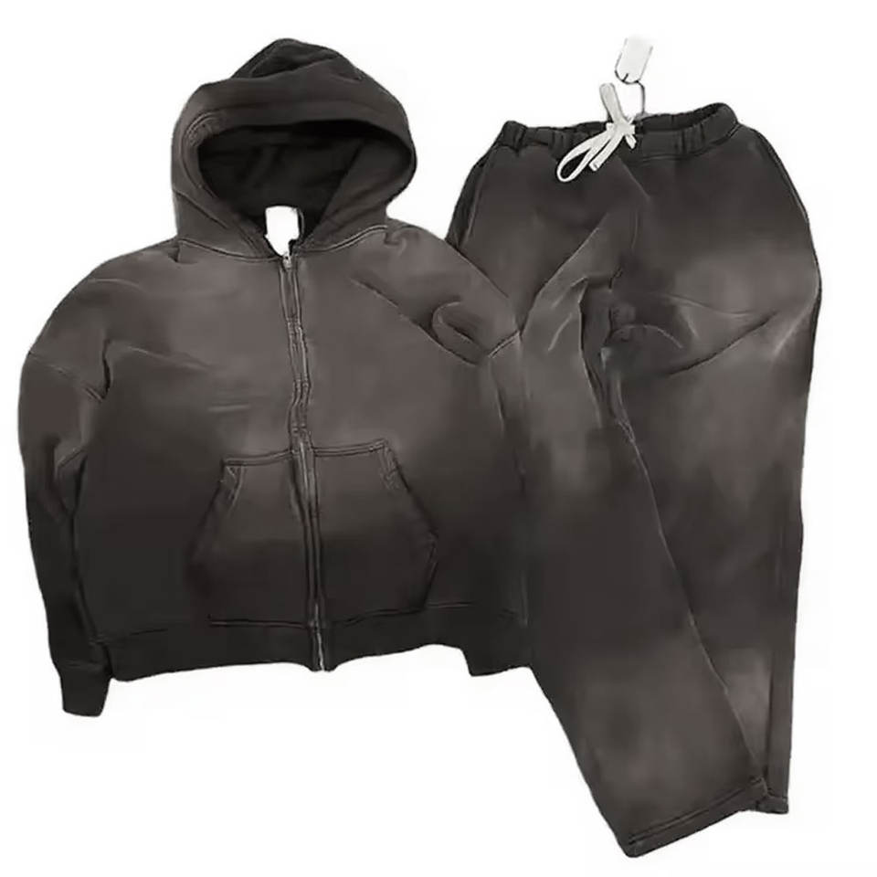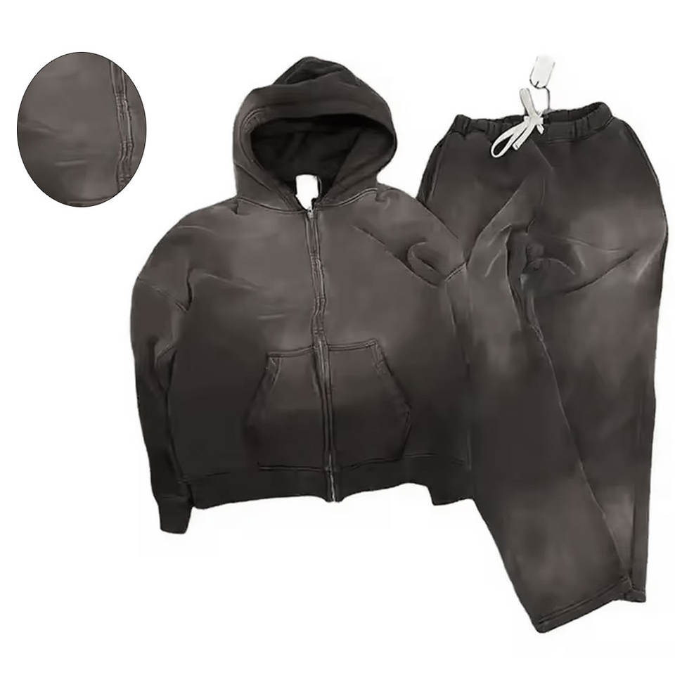 Heavy Cotton Winter Printed Solid Eco-Friendly Boxy Fit Hoodie and Baggy Pants Sweatsuit Custom Streetwear Set for Men and Women