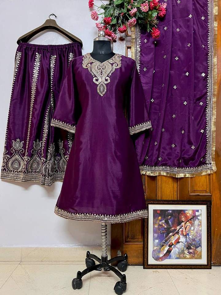 Product Name:Chinon Silk Sequence Embroidery Top Palazzo & Dupatta