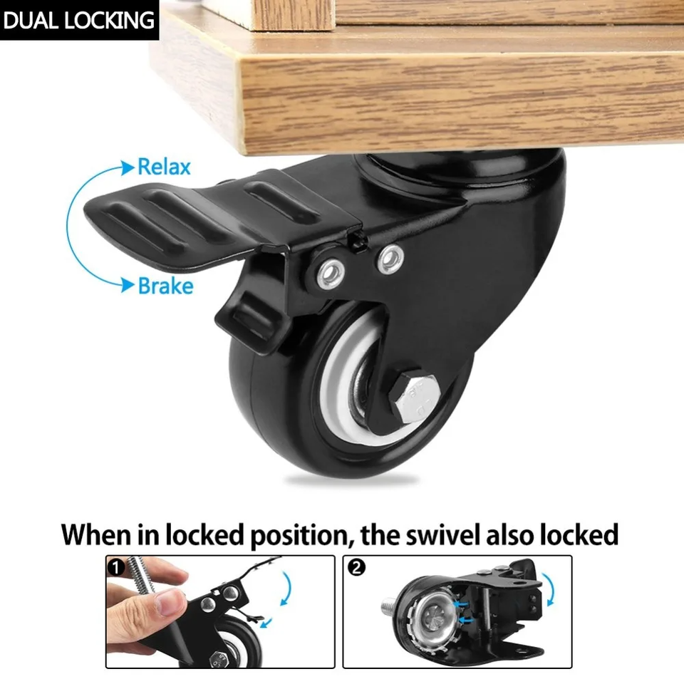Heavy Duty Plastic 1.5"/2" Swivel Caster Wheels Threaded Stem with Brake Trolley Furniture Caster M8/M10 Strong