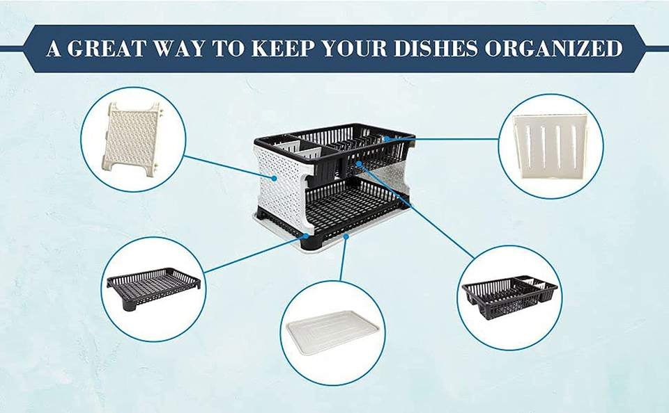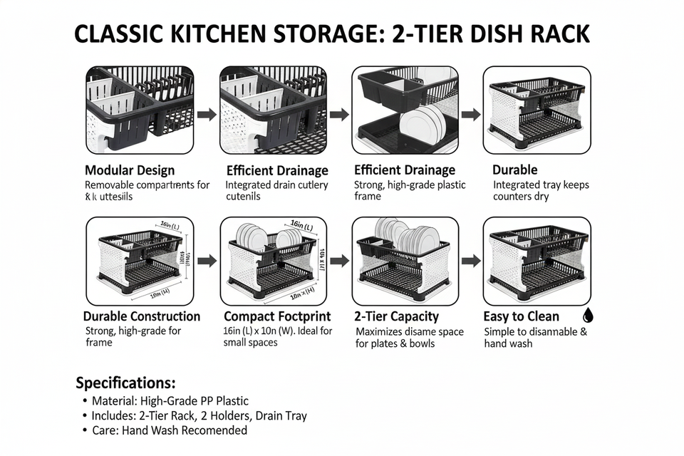 Heavy Duty 2 Layer Dish Rack – Rust-Resistant Kitchen Drying Stand with Drainage System