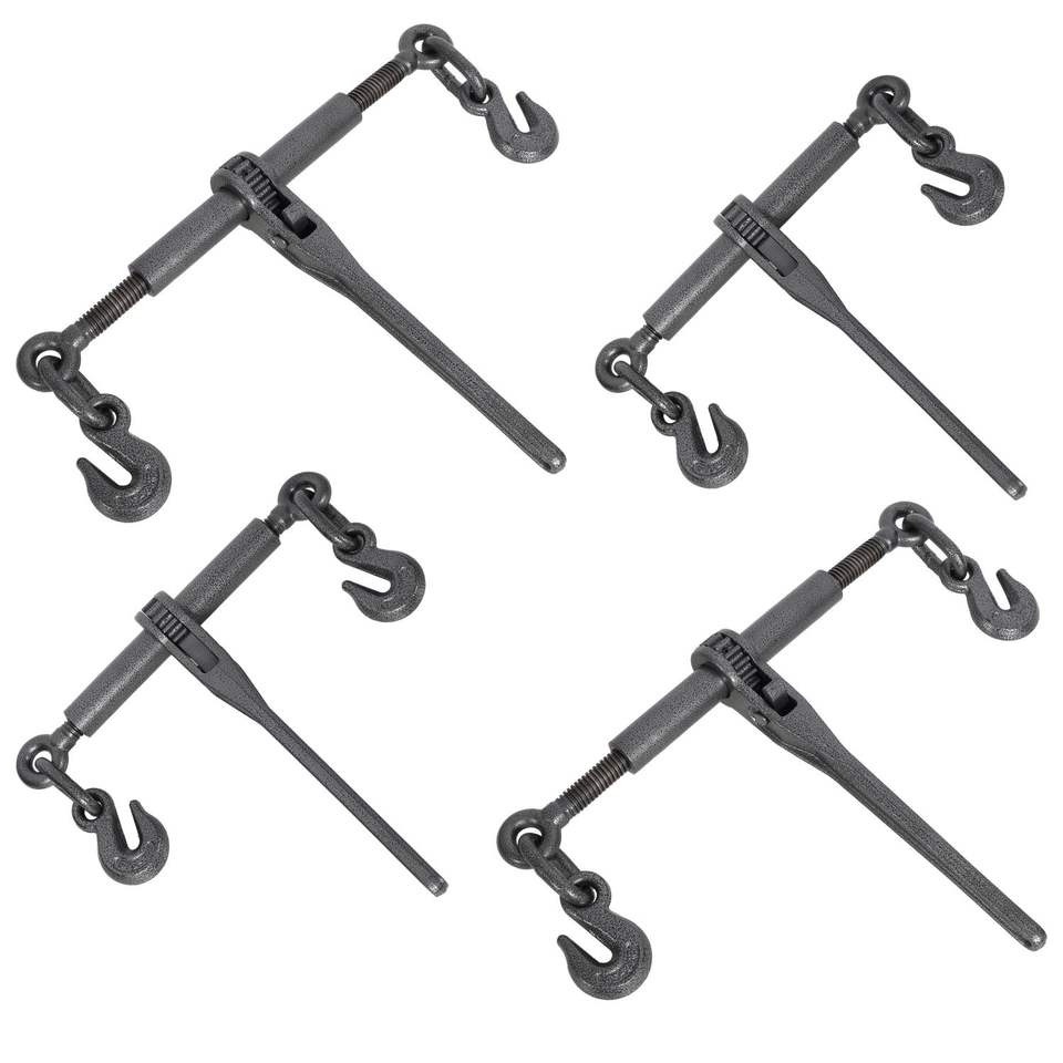 Heavy Duty 3/8\"-1/2\" Black Hammertone Ratchet Tie Downs 9200lbs Working Load with G70 Hooks Adjustable Length 4-Pack by