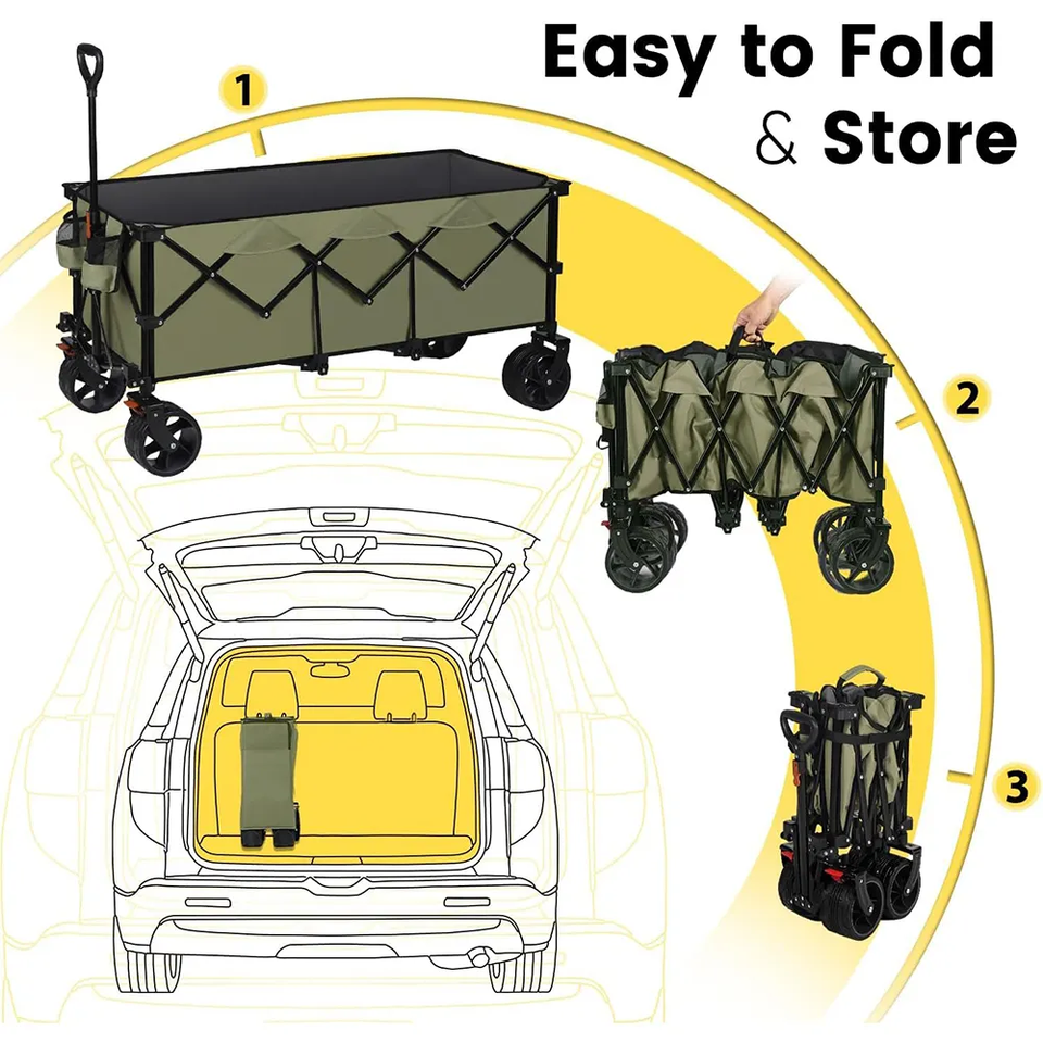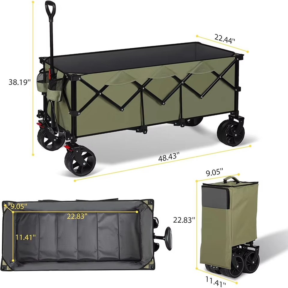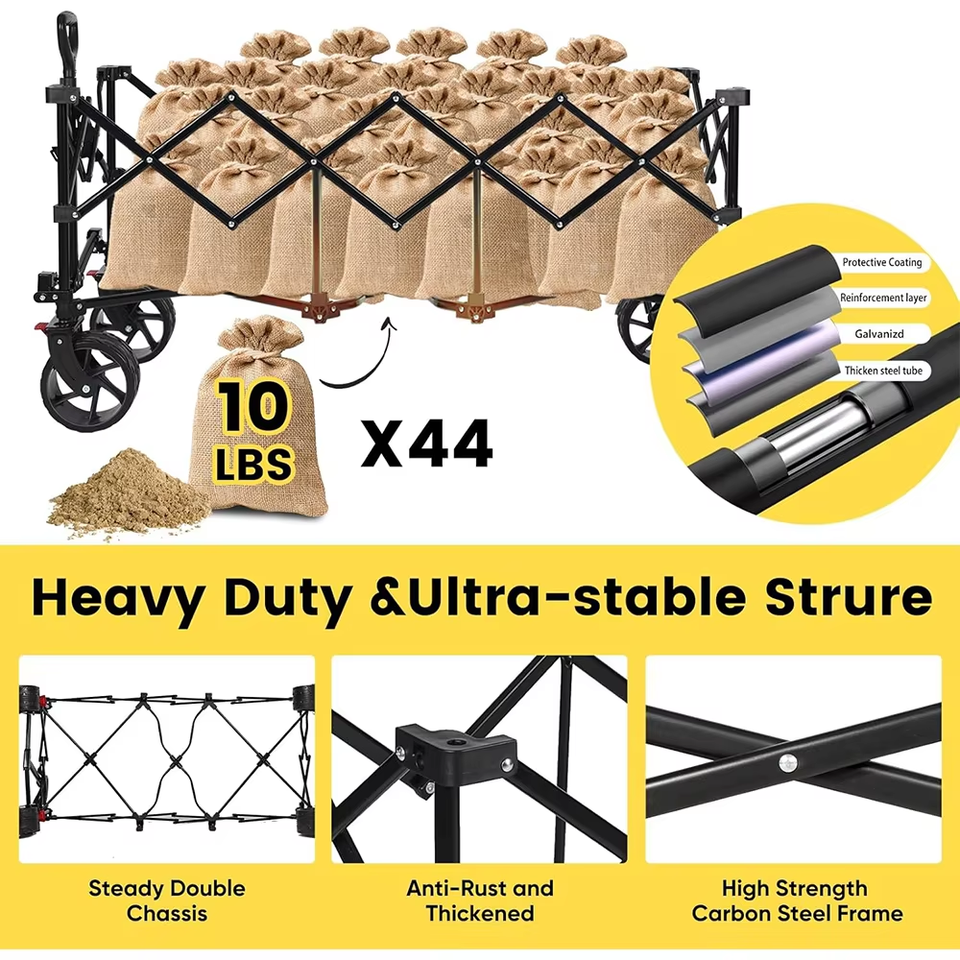 Ergonomic Handle Comfortable Pulling Heavy Duty 300L Folding Utility Garden Cart with Platform Structure OEM Customizable