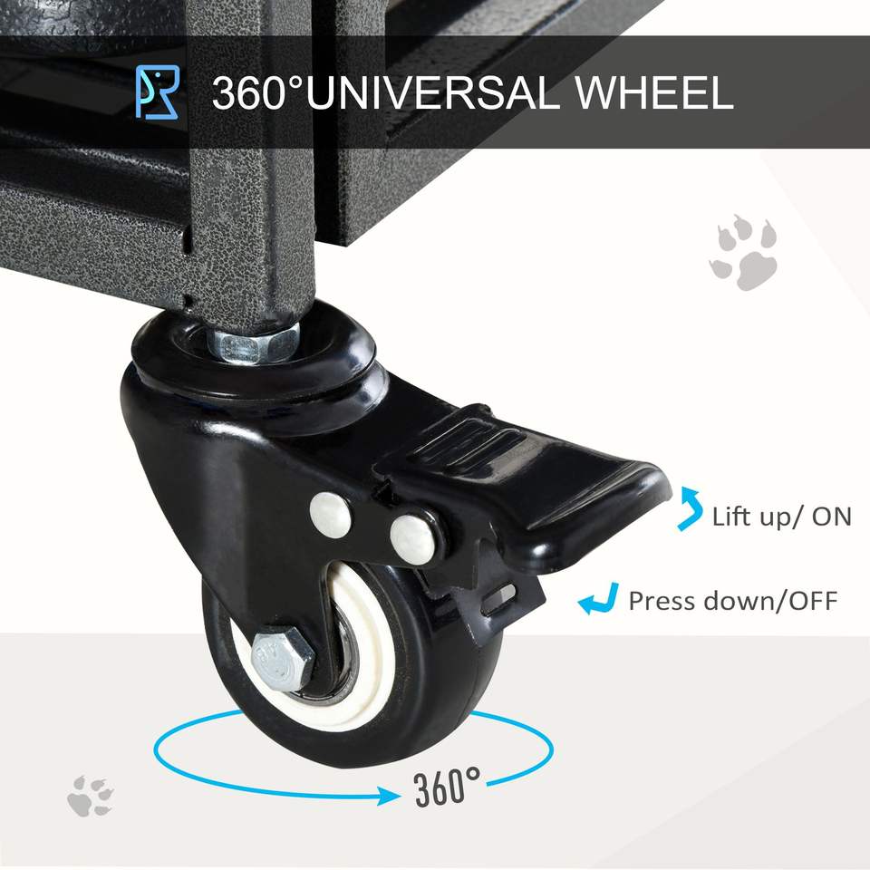 Heavy Duty 37\" Metal Dog Crate Gray Folding Kennel with Removable Tray Cover and 4 Wheels Pet Carriers