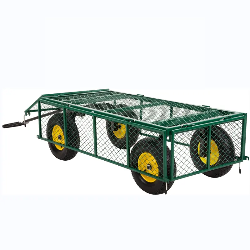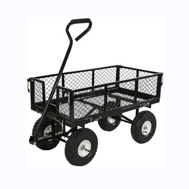 Heavy Duty 4 Wheels Steel Utility Outdoor Trolley Tool Cart Yard Garden Mesh Cart Wagon Removable Sides