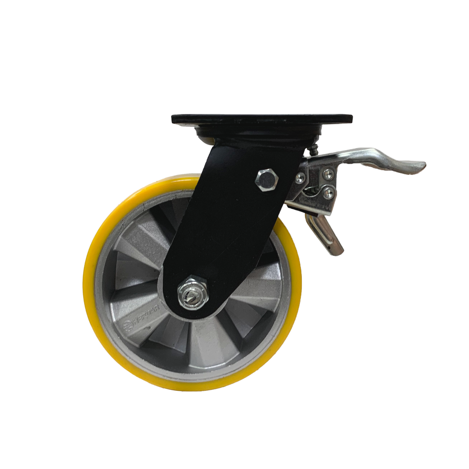 Heavy Duty 6 Inch Polyurethane (PU) Ball Bearing Brake Caster Wheel Premium Quality Casters for Increased Stability Durability