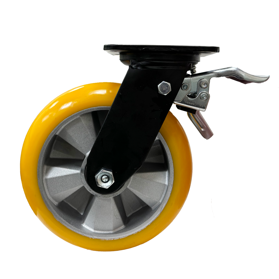 Heavy Duty 8 Inch Polyurethane (PU) Ball Bearing Swivel Brake Caster Wheel
