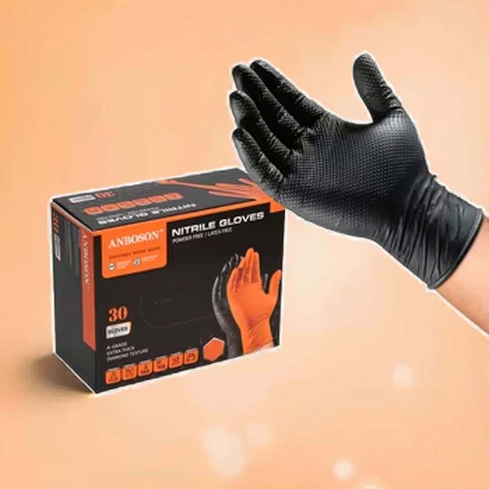 Heavy Duty 8Mil Black Nitrile Gloves Soft Disposable Abrasion Resistant Demolition Work Protection Powder Free Latex Free