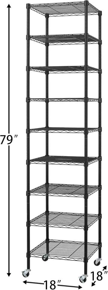 Heavy Duty 9-Tier Wire Cloth Shelf Display Rack Black Adjustable Shelving Unit Wheels for Food Storage Low Tariff Welding