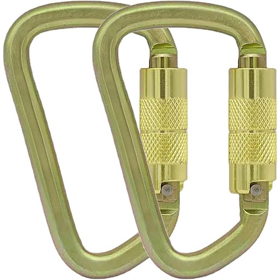 MD MD-R608 Heavy Duty Auto-Locking D-Shape Stainless Steel Gold 1-Pack Universal Use Carabiner 30KN=6500lbs Climbing Clip for
