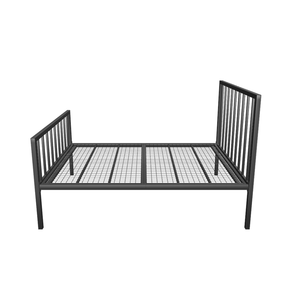 Heavy Duty Black Steel Bed Frame Vertical Bar Headboard Footboard Contemporary Minimalist Platform King And Queen Size Available