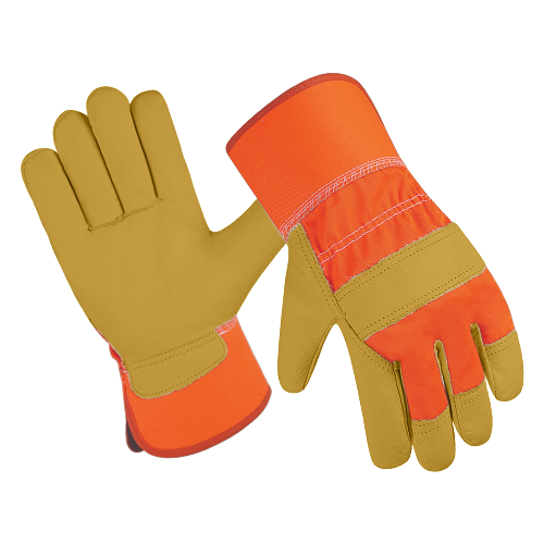 Heavy Duty Canadian Leather Gloves XL Size Fluorescent Back Rubberized Cuff Cowhide Grain Safety Hand Protection Cotton Liner