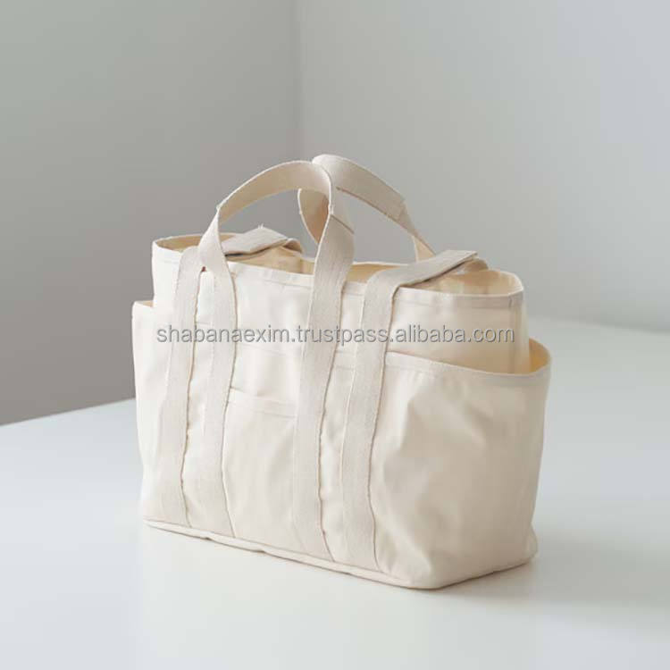 Heavy Duty Canvas Tote Bag Custom Design Natural Color 100% Cotton Market Shopping Bag With Zipper Storage Clothes Bag