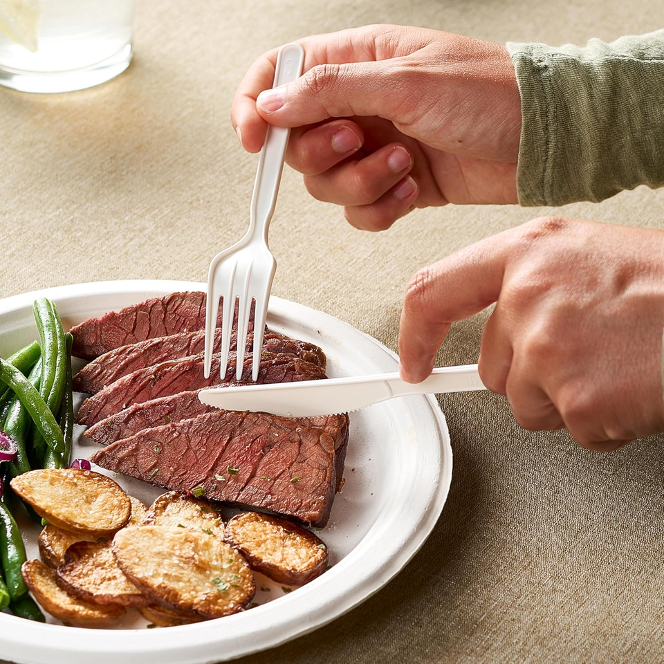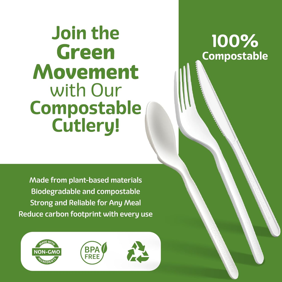 Heavy Duty Compostable Biodegradable Eco-Friendly Disposable Cutlery Set Fork Spoons Knives BPA Free Food Safe for Parties