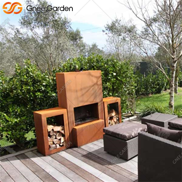 Heavy-Duty Corten Steel Wood-Burning Fireplace with Chimney Outdoor Garden BBQ Heater for Patio
