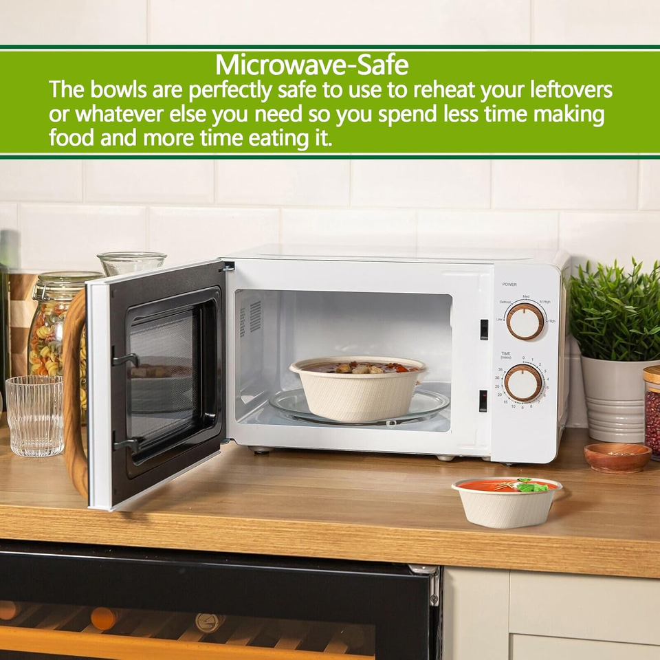Heavy Duty Disposable Paper Bowls Modern Design for Party Use Natural Bagasse Material for Hot Soup Salad Dessert More BPA FREE