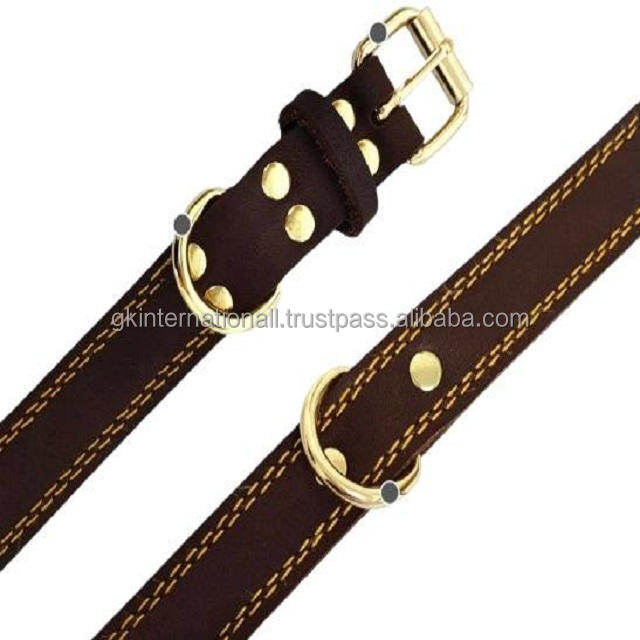 Heavy Duty Double Stitched Adjustable Leather Dog Collar for Small Medium Large Dog Stylish Roller Pin Buckle and Double D Ring