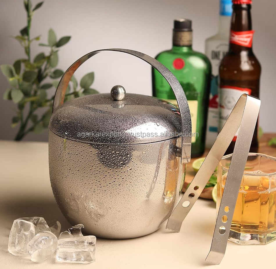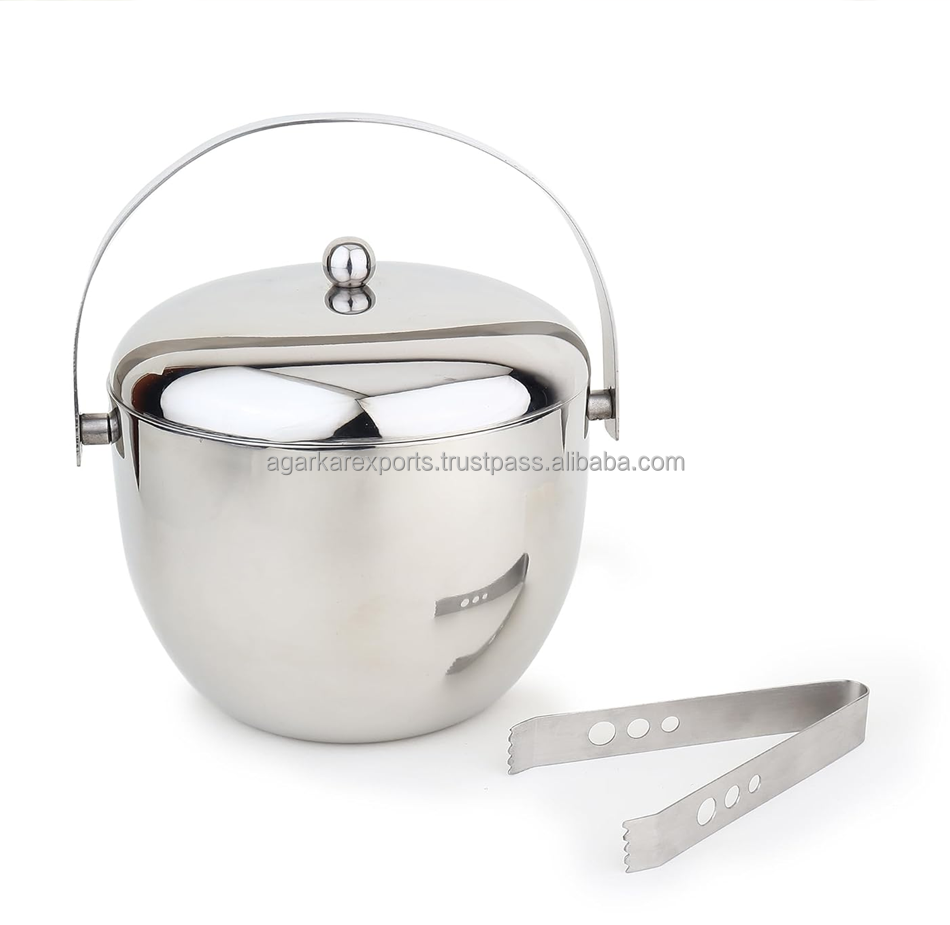 Heavy Duty Double Walled Luxury Ice Bucket with V Tong Stainless Steel | Mirror Finish | Party Use | Made in India
