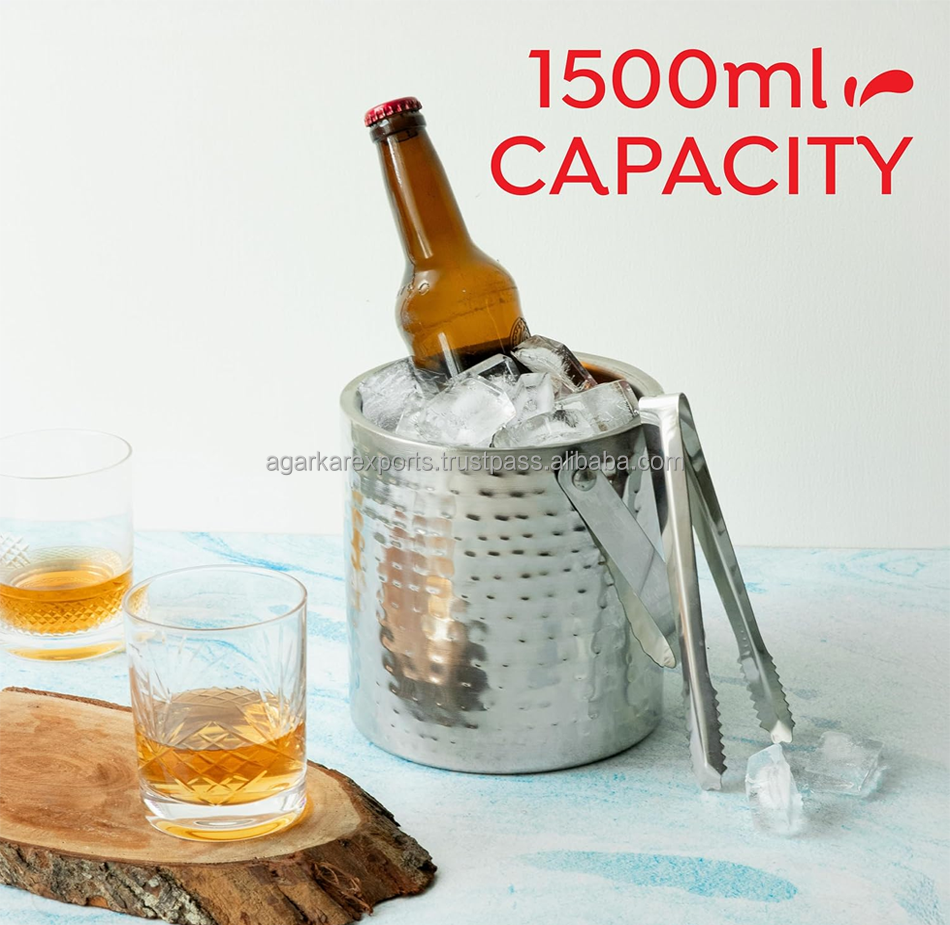 Heavy Duty Double Walled Stainless Steel Ice Bucket with V Peg Party Luxury Barware Leak Proof India