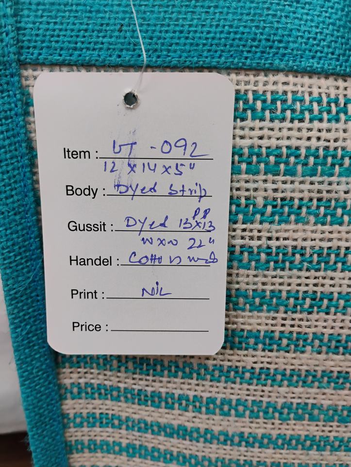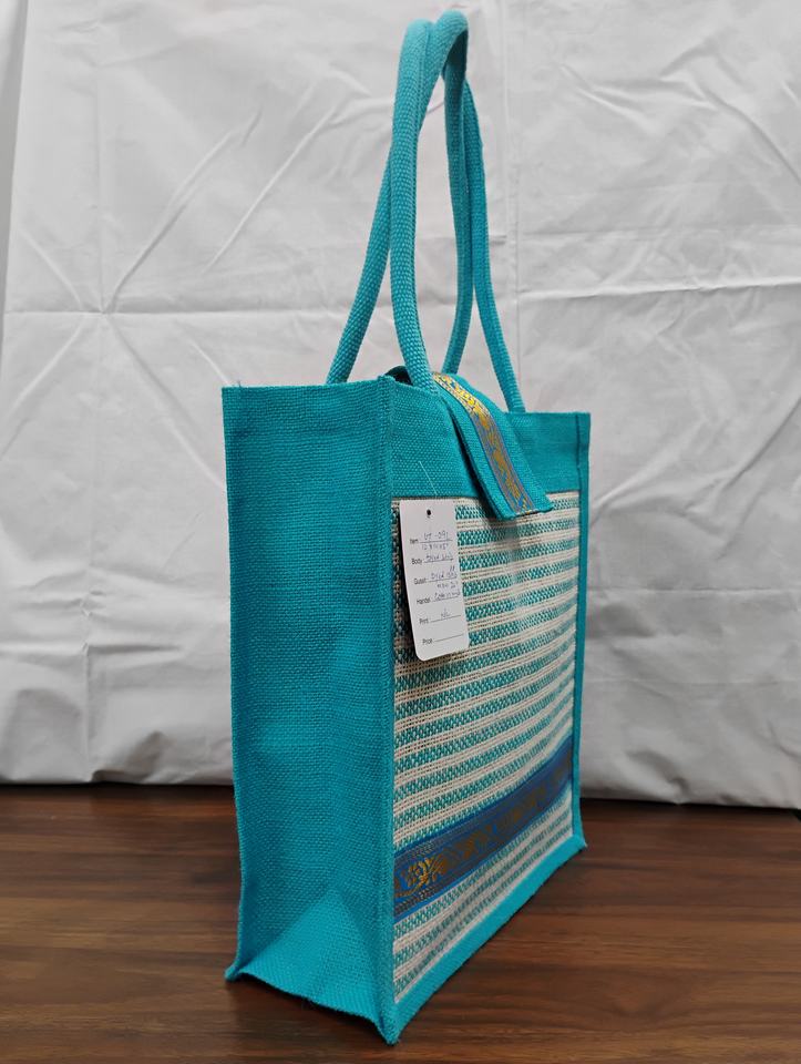 Heavy Duty Dyed Jute Strip Tote Bag with 13x13 Inches Size PP Reusable Cotton Handle and 22 Inch Length