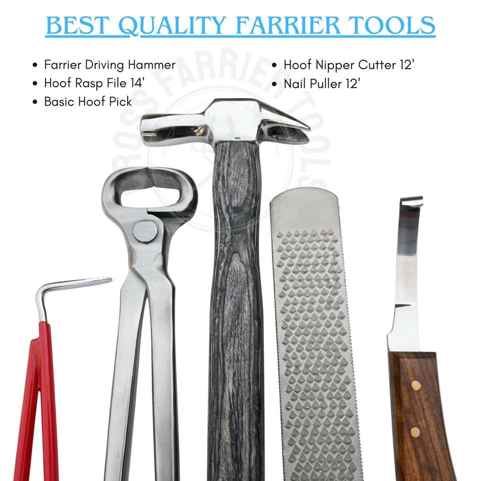 Heavy Duty Equine Farrier Hoof Trimming Tool Kit 12 Inch Hoof Nipper Hoof Knife Driving Nail Hammer Rasp File and Pick Up Tool