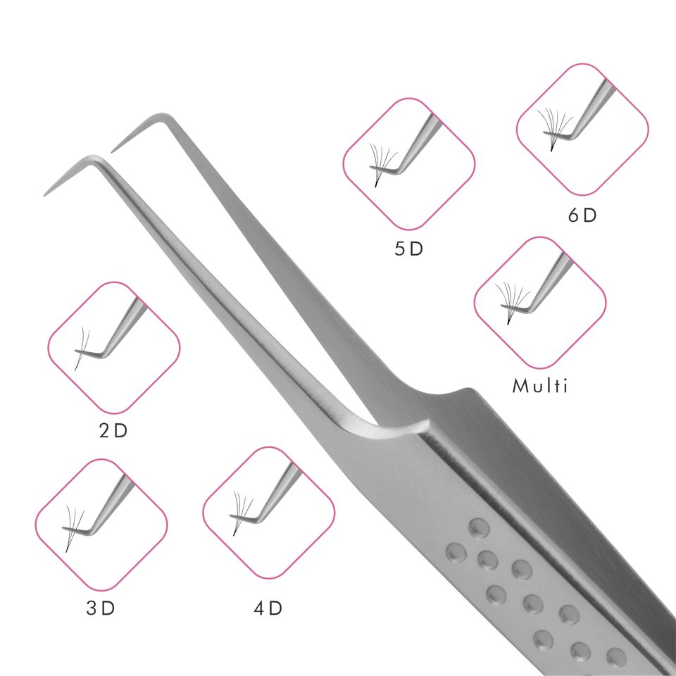 Heavy Duty Eyelash Extension Volume Tweezer 6mm 90deg in Satin Color with Dotted Design Private Label, Eyelash Extension Tweezer