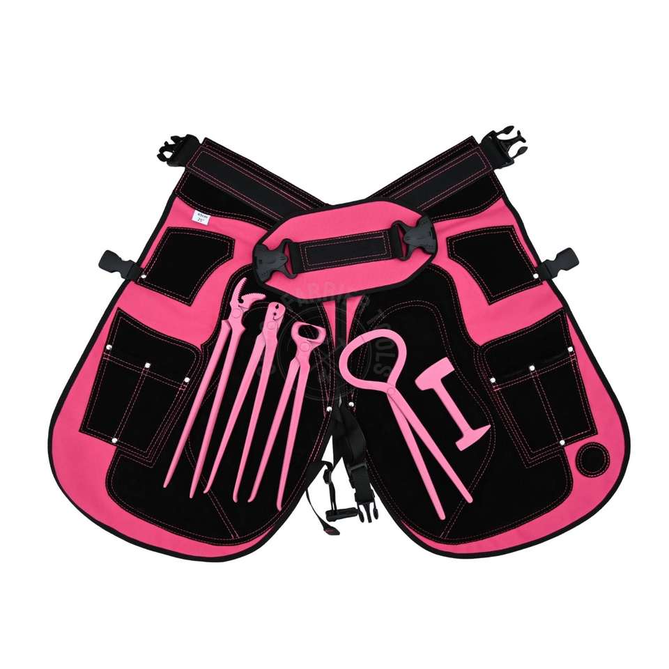 Keywords:farrier tool kit, pink farrier apron, leather farrier chaps