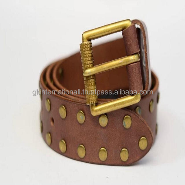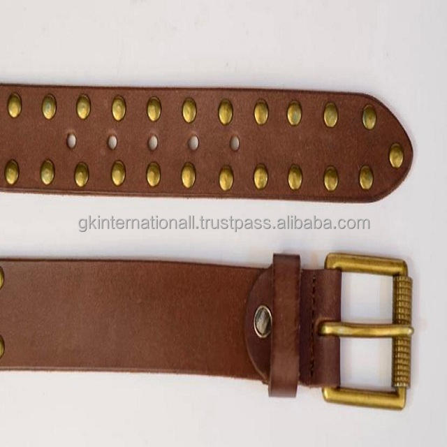 Heavy Duty Full Brass Riveted Belt in Tan Color with Durable Designer Roller Buckle Custom Made Men's Leather Casual Belt
