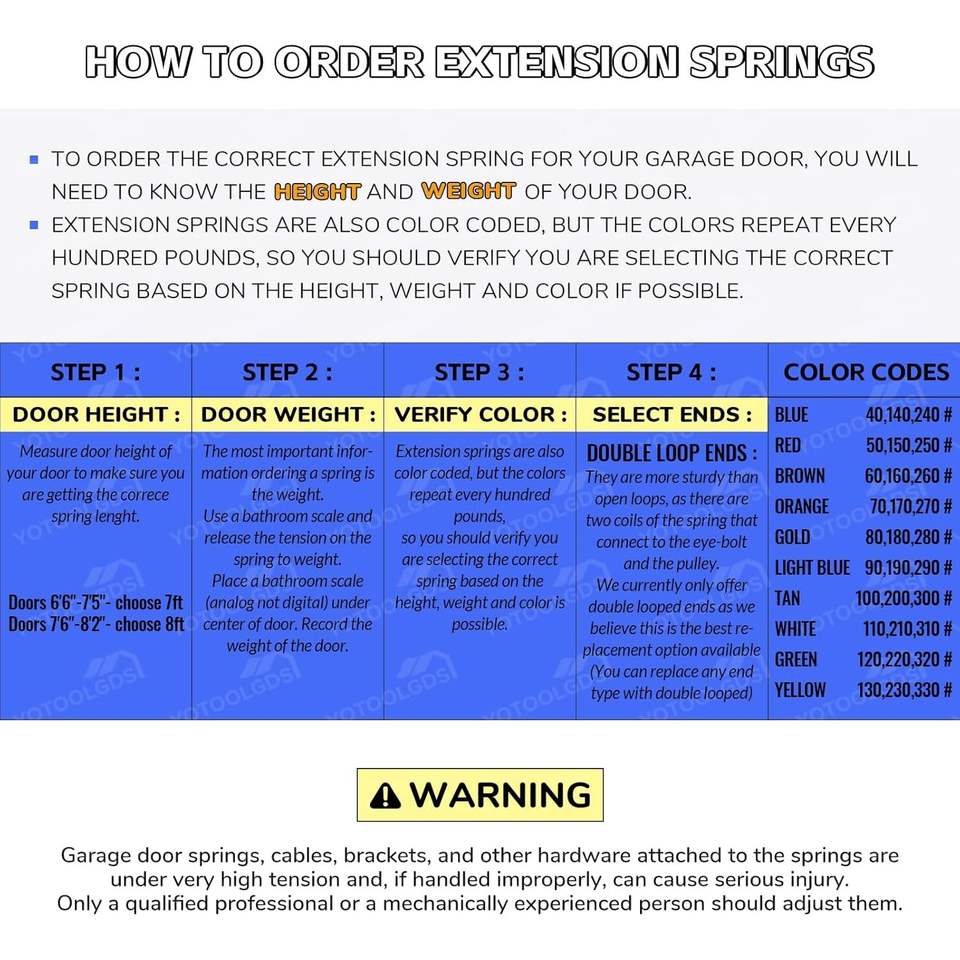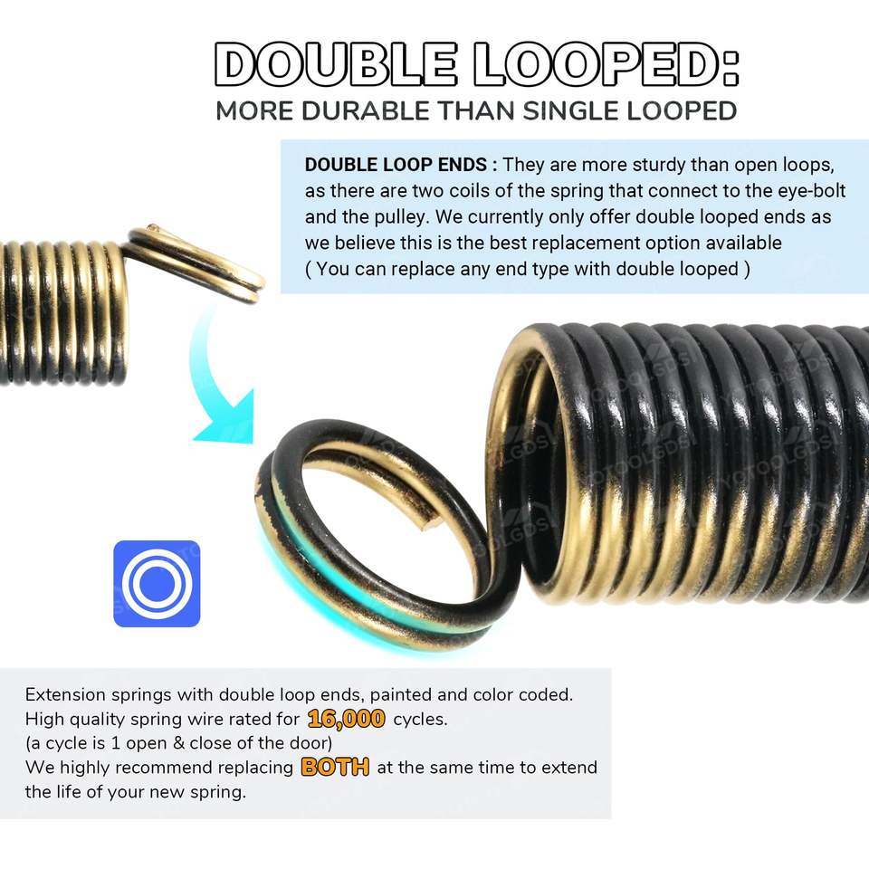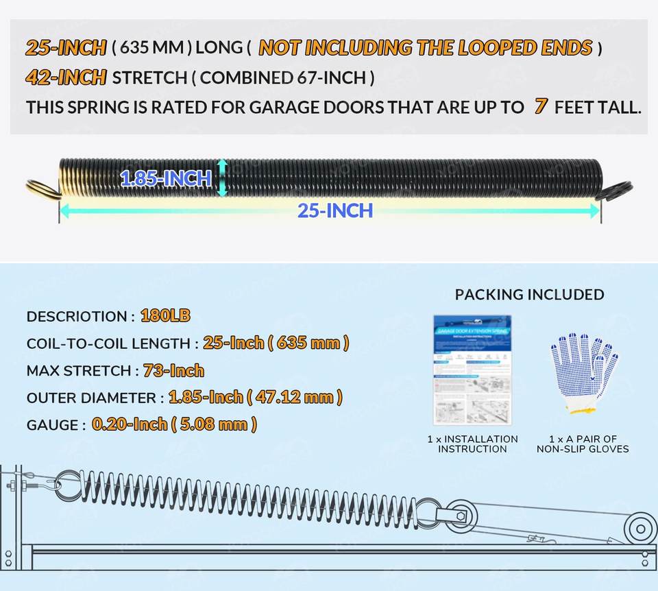 Heavy Duty Garage Door Extension Springs 180 Lbs 25\" Long Double Loop Ends High Pair of Stretch Springs