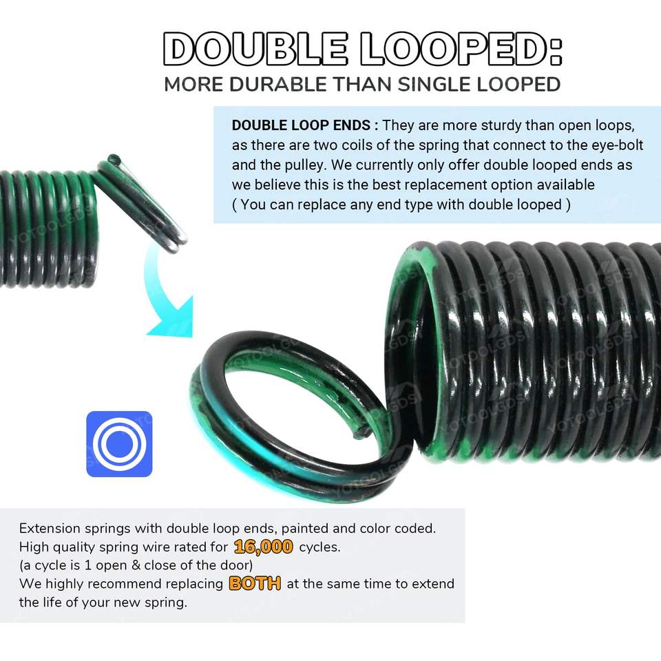 Heavy Duty Garage Door Extension Springs 220 Lbs 25\" Long Double Loop Ends High Pair of Stretch Springs