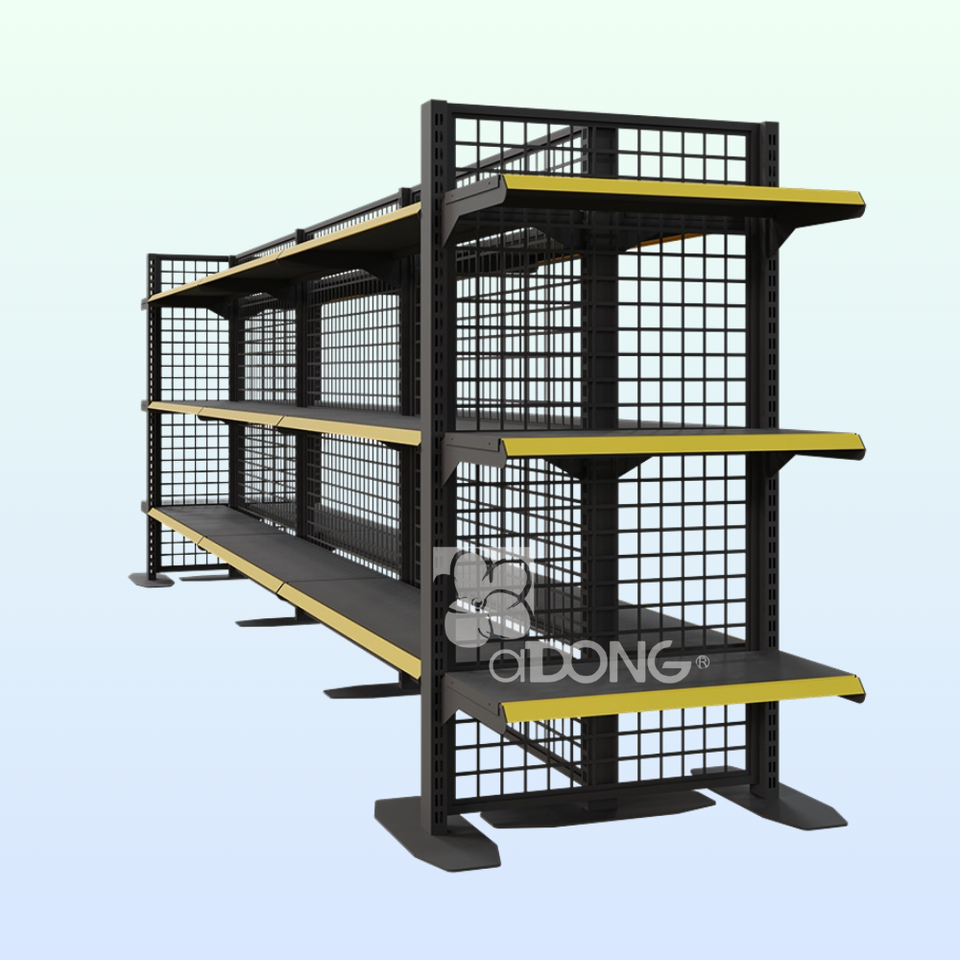 Shelf Type:product display, Double-Sided Wire Grid Gondola Shelf, Heavy-duty Metal Store Shelf, Wire Mesh Gondola Display, Freestanding Retail Display Shelf