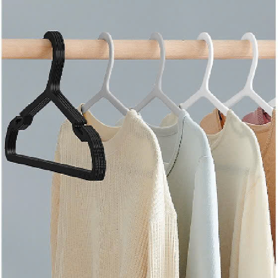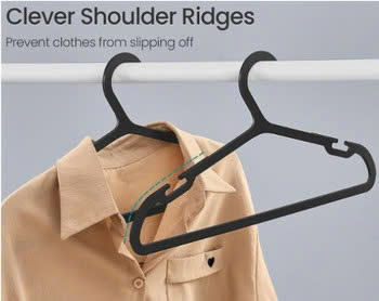 Heavy Duty Injection Molded PP Plastic Coat Hangers Wide Shoulder Notches Space Saving 0.2 Inch Thick Durable Design Ink Black