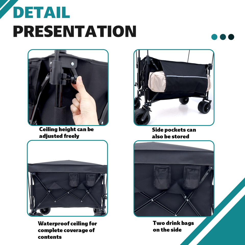 Heavy Duty Large Capacity Foldable Collapsible Utility Beach Wagon Cart 3.2in Rotatable Wide Wheels Side Outdoor Furniture