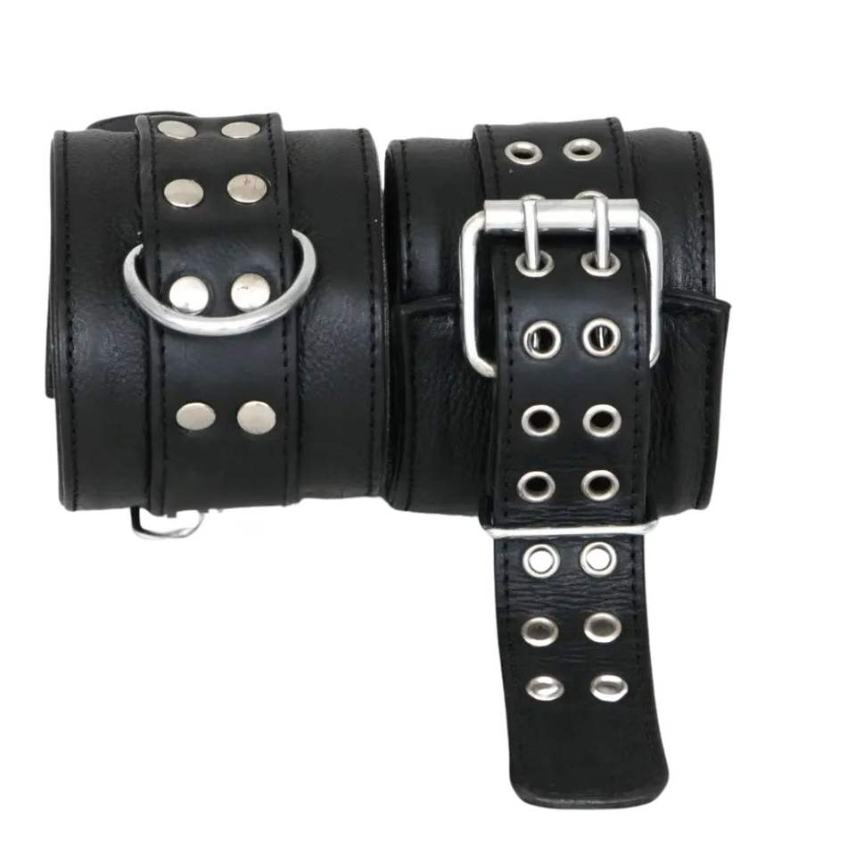 Heavy Duty Leather Wrist Cuffs with Rivets and D Rings