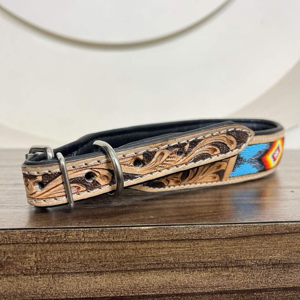 Heavy Duty Luxury Soft Comfortable Durable Genuine Leather Pet Dog Collars Latest Designer Hand Tooled Leather Beaded Pet Collar