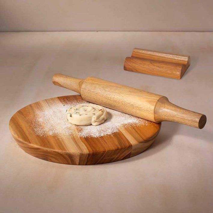 Heavy Duty Natural Wood Rolling Board Wooden Chakla Belan for Chapati Making Kitchen Tool for Rolling Pins & Pastry Boards