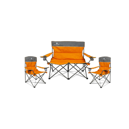 Heavy-Duty Outdoor Folding Camping Chair Set 3-Piece Cup Holder Carry Bag Includes One Sofa Two Single Chairs Supports Beach