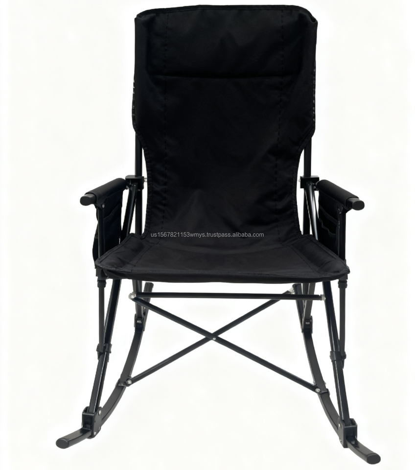 Heavy-Duty Outdoor Folding Rocking Chair with Cup Holder Adjustable Backrest Storage Bag for Beach Hiking Travel for Camping