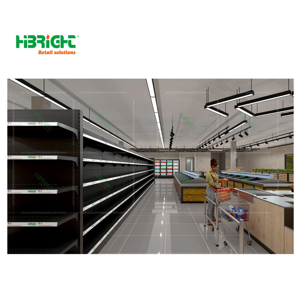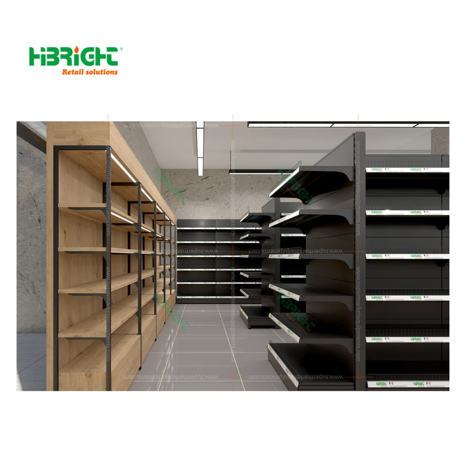 Heavy-Duty Single-Sided Metal Supermarket Rack One-Stop Retail Store Service Display Equipment Layout Design Supermarket Shelves