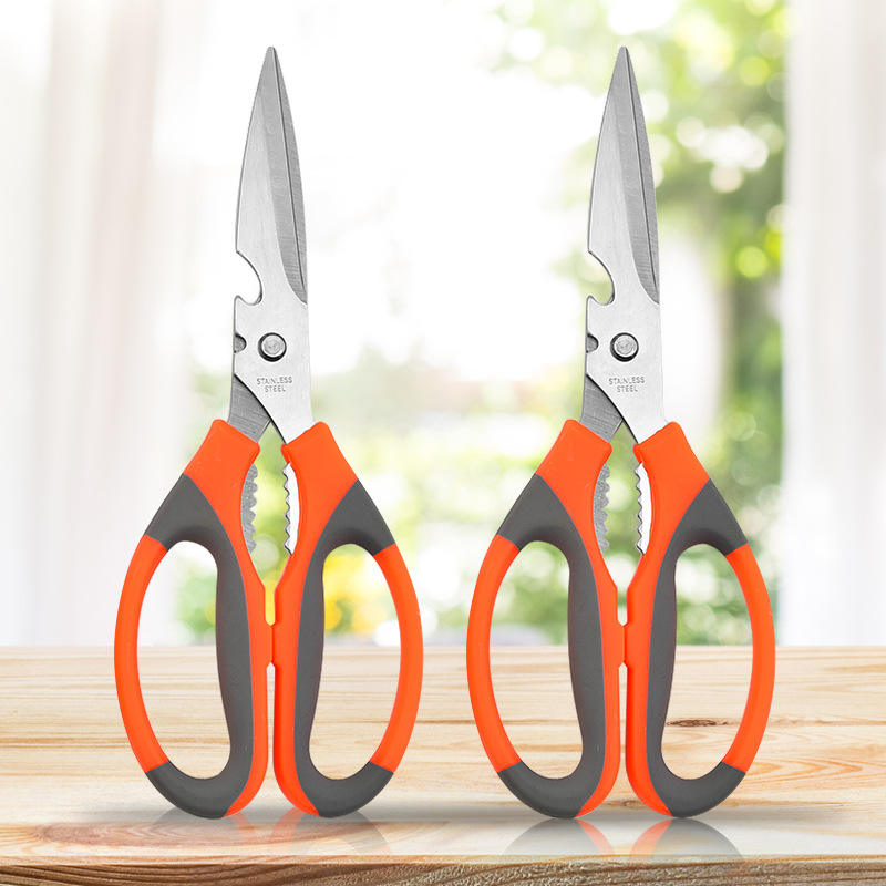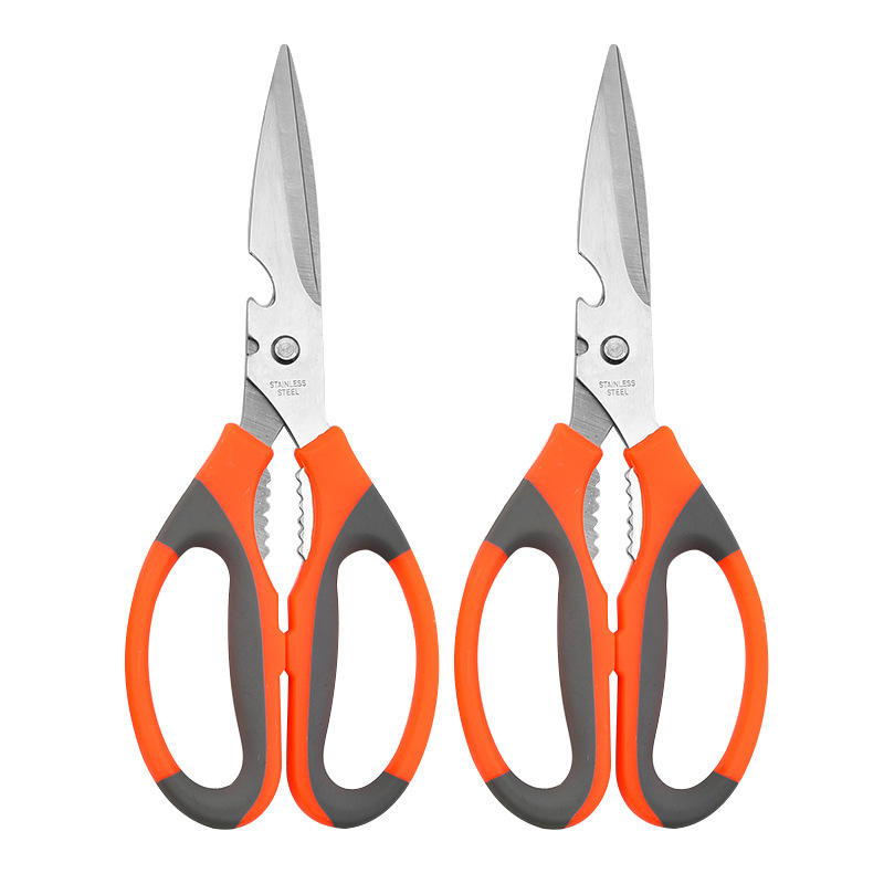 Heavy Duty Stainless Steel Kitchen Scissors Orange Color For Vegetable And Meat Cutting With Sharp Blade And Comfort Grip