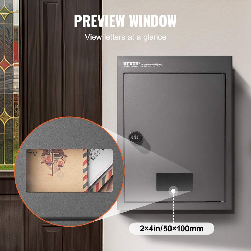 Heavy Duty Steel Wall Mailbox 2.8-7.9\" Dark Gray Drop Box with 13\" Combination Lock 12.5x6.3x16.9\" Safe for Wall Mounting