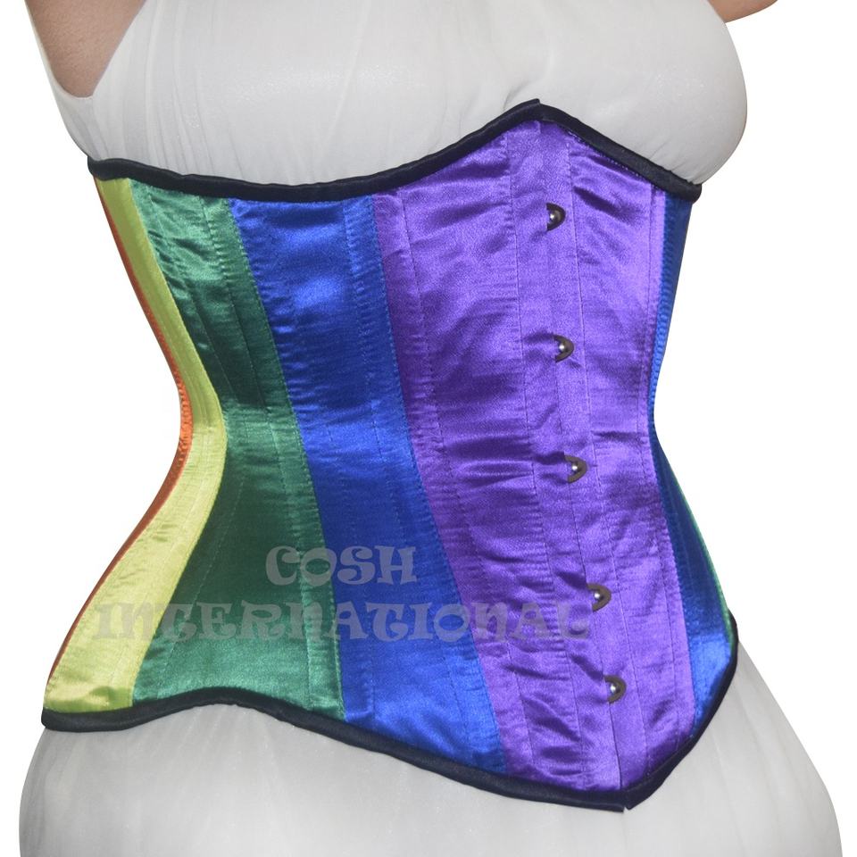Heavy Duty Underbust Steelboned Waist Training Rainbow Satin Fashion and Fitness Wear Satin Corsets Supplier