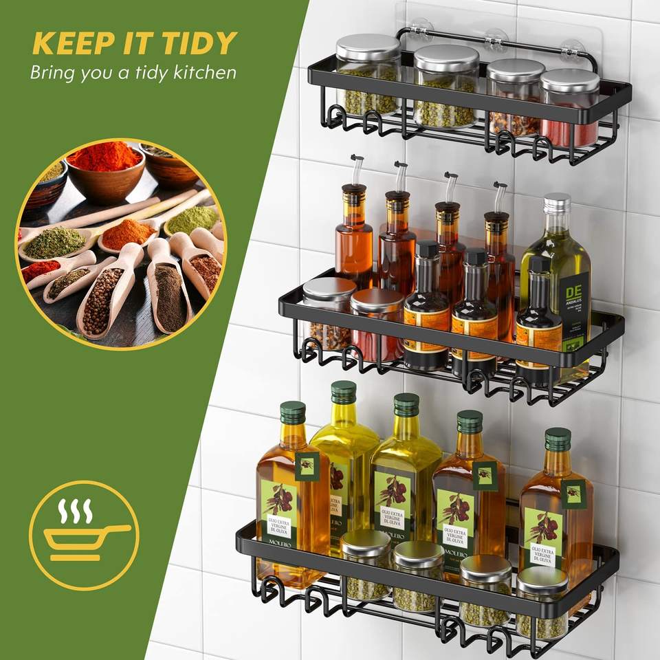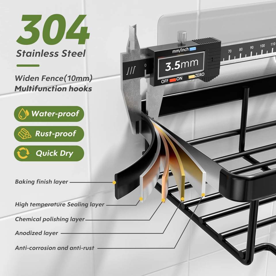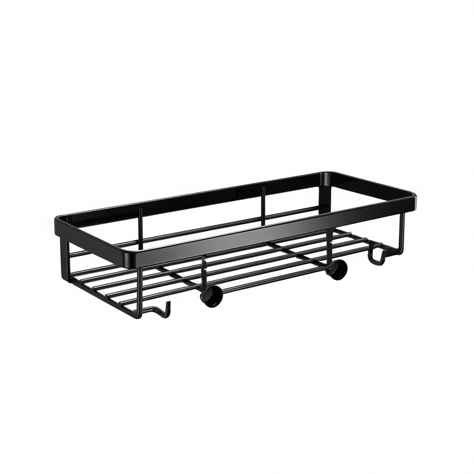 Heavy Duty Wall Mounted Shower Shelf Rack 24 In Wide Single Tier Metal Storage Organizer With Hooks For Bathroom