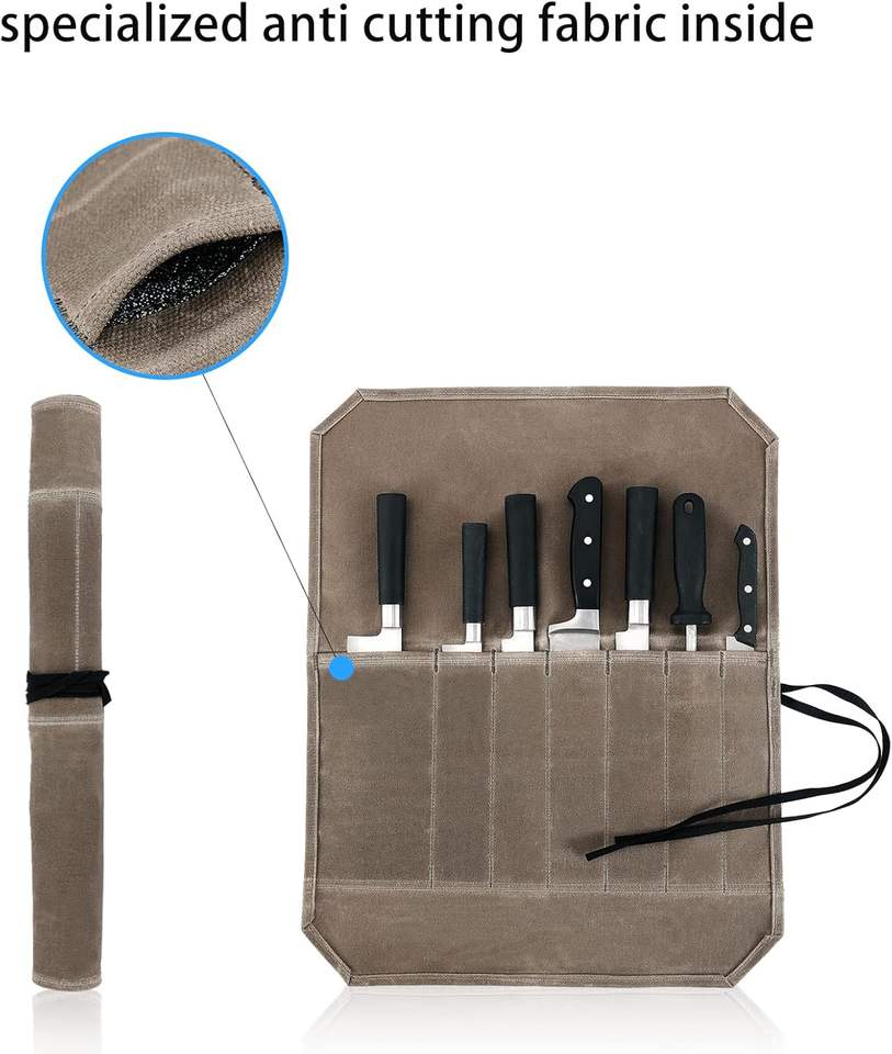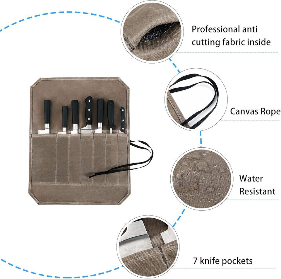 Heavy Duty Waxed Canvas Knife Roll Bag 7 Slots Outdoor Storage Case for Kitchen Cutlery