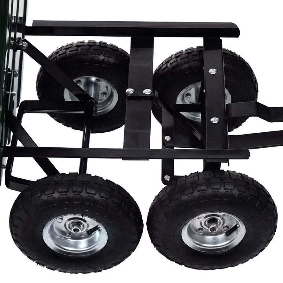 Feature:Patented dumping mechanism, 10-inch pneumatic tires