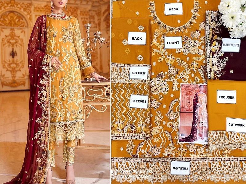 2021 Hot Selling Heavy Embroidered Formal Silk Chiffon Wedding Dress Salwar Kameez Style