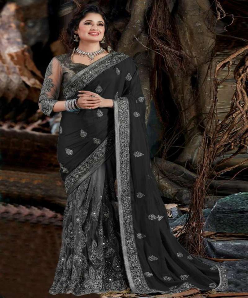 Heavy Embroidered Party Wear New Collection All Sizes and Color Net Fabric Embroidered Indian Women Wear Ready Made Saree with Alphanumero