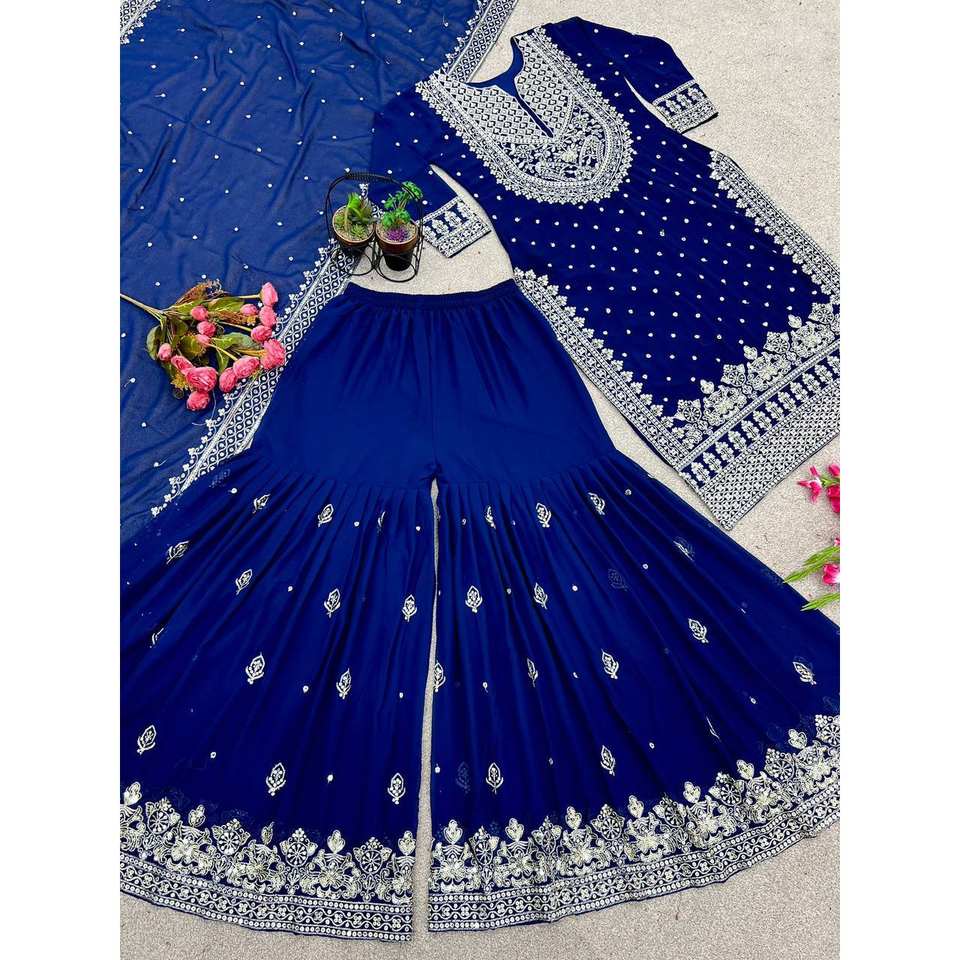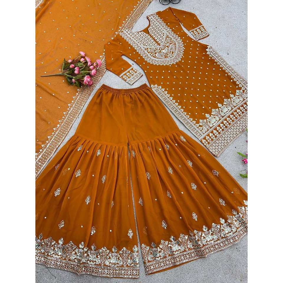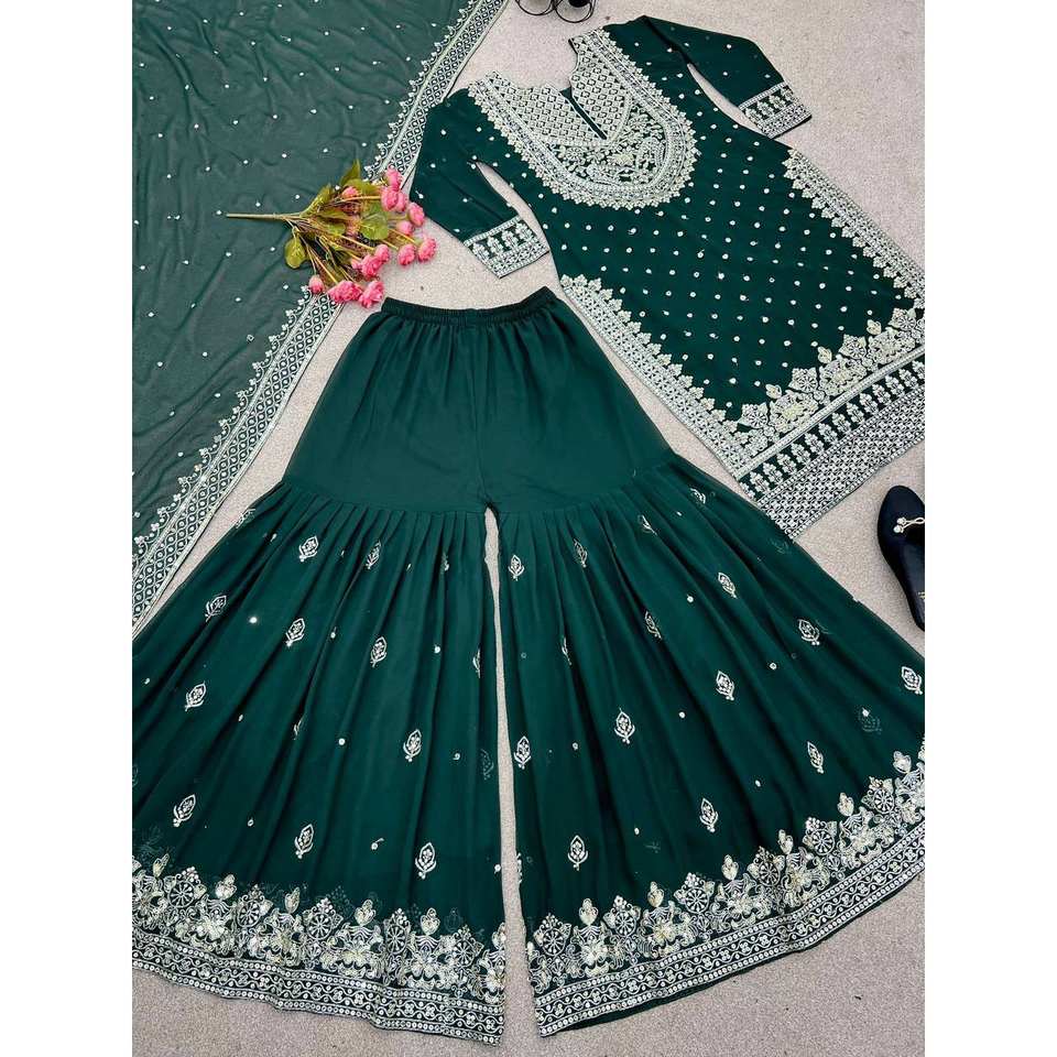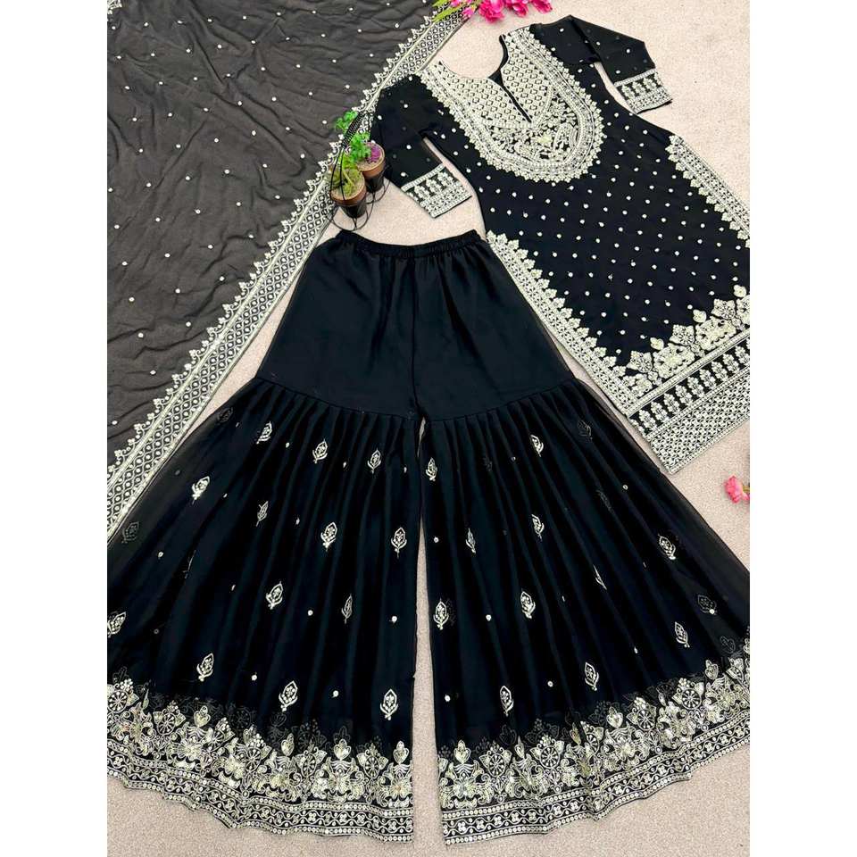 Heavy Embroidery Sequence Work Evening Dress Top-Gharara and Dupatta