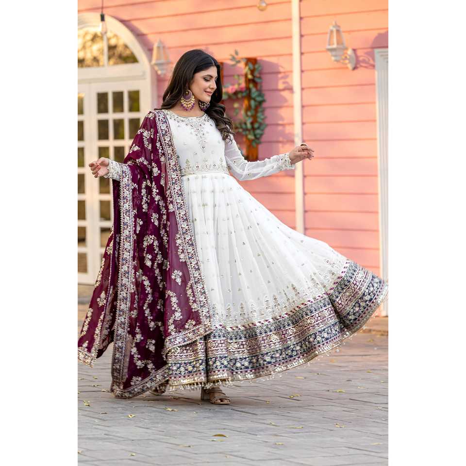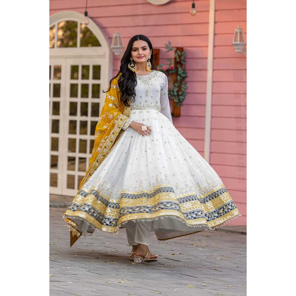 Heavy Faux Georgette Gown Dupatta & Bottom Set for Women for Party Wear Look