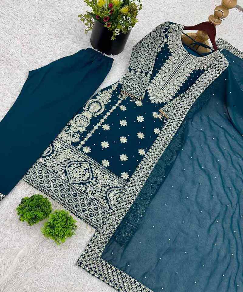 Heavy Indian Ethnic Wear Silk Georgette Top Sharara with Dupatta